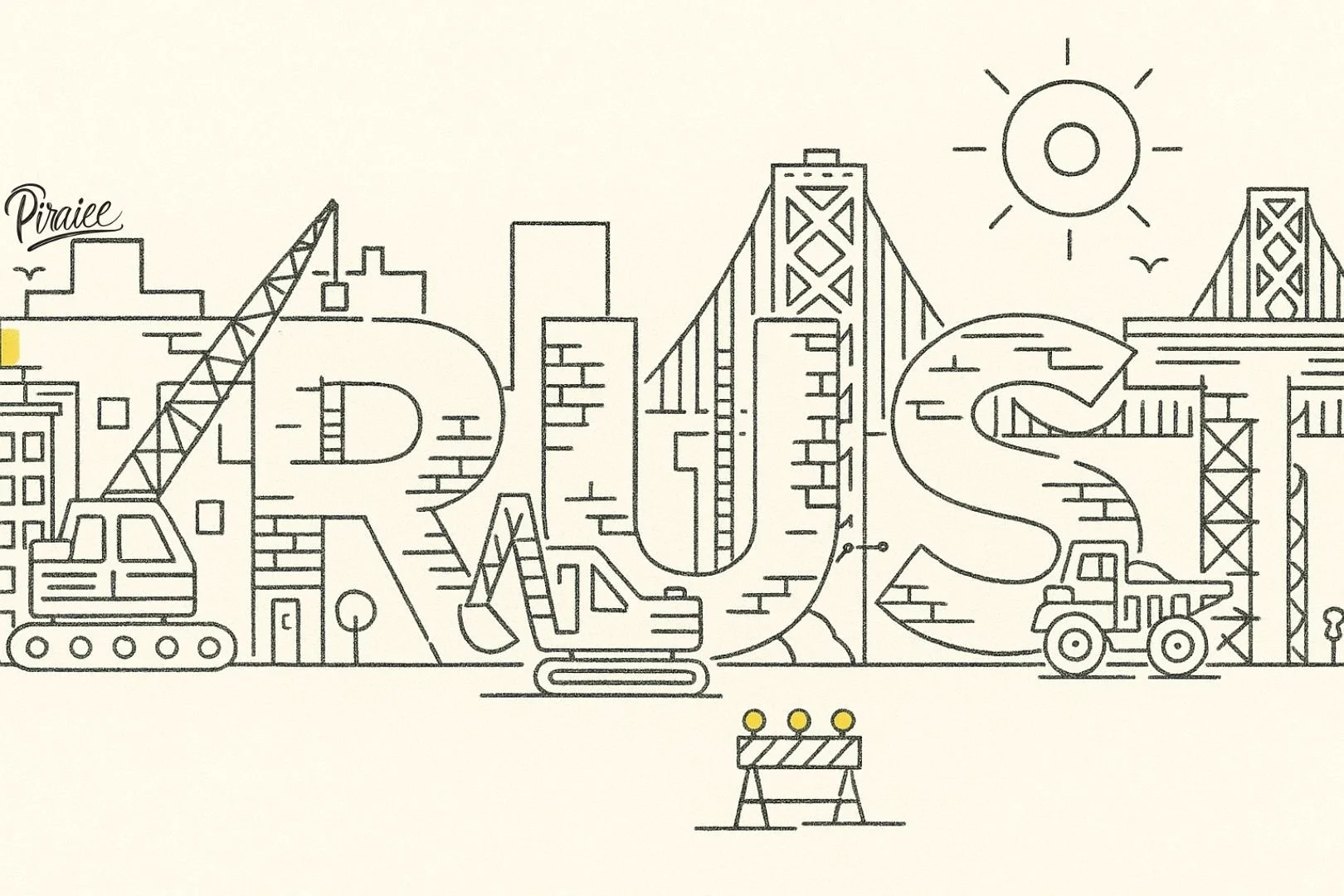 A black and white illustrated portrait of Ahmad Piraiee with styled hair and a beard, wearing a yellow turtleneck and a dark blazer, with a subtle background and the artist's signature 'piraiee' in the bottom right corner.